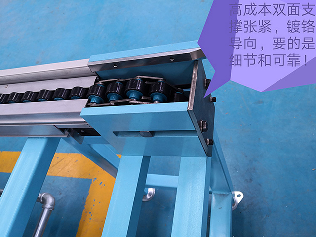 倍速鏈生產(chǎn)線(xiàn)主要用于裝配及加工生產(chǎn)線(xiàn)中的物料輸送,其輸送原理是運(yùn)用倍速鏈條的增速功能,使其上承托貨物的工裝板快速運(yùn)行,通過(guò)阻擋器停止于相應(yīng)的操作位置;或通過(guò)相應(yīng)指令來(lái)完成積放動(dòng)作及移行、轉(zhuǎn)位、專(zhuān)線(xiàn)等功能。
